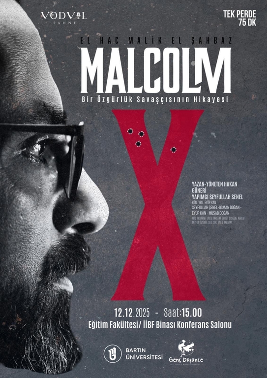 Üniversitemiz Genç Düşünce Kulübü tarafından, “Bir Özgürlük Savaşçısının Hikâyesi (Malcolm X)” adlı tiyatro eseri sahnelenecektir.